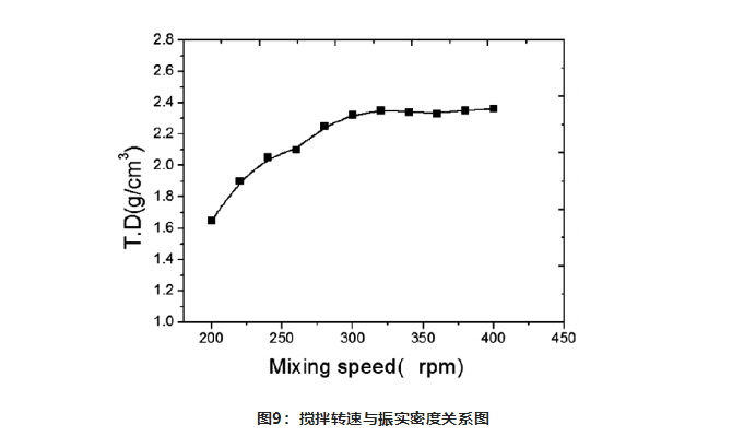 攪拌速度對晶體結(jié)晶過程影響較大,從而影響前驅(qū)體的振實密度。